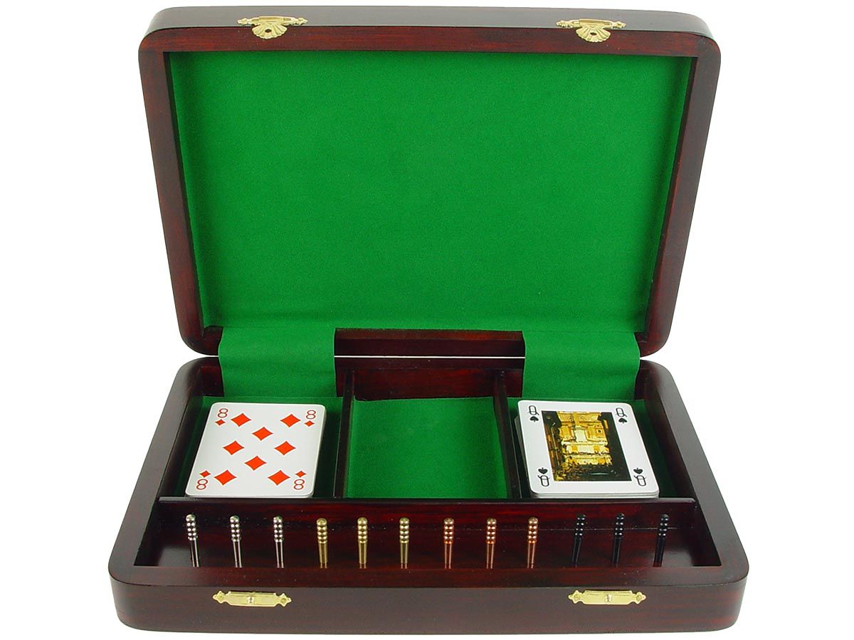 One can't find such gorgeous handmade continuous cribbage board from any other source as this has been developed by our designing and research section with immense dedication. This kind of unique cribbage board with 12 metal pegs and box to store cards is being offered for the first time and is hardly available elsewhere.