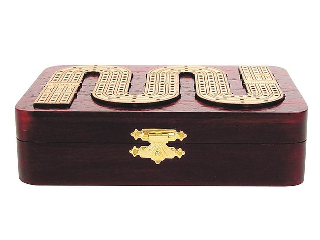 One can't find such gorgeous handmade non-continuous cribbage board from any other source as this has been developed by our designing and research section with immense dedication. This kind of unique cribbage board with 9 metal pegs and box to store cards is being offered for the first time and is hardly available elsewhere.