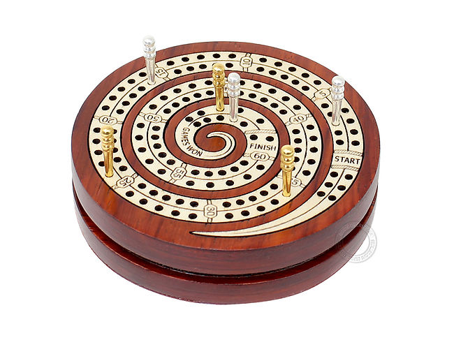 An additional Round Pocket Cribbage Board is being provided with the Jumbo cribbage board. The pocket crib board measures 3.25" (dia) and 0.75" high. You can pull out the upper lid of the pocket board and underneath six metal pegs (3 Silver & 3 Gold Plated) are stored.