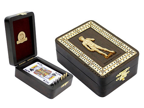 David by Michelangelo Wood Carved Inlaid Folding Cribbage Board / Box Wenge Wood / Maple - 2 Tracks