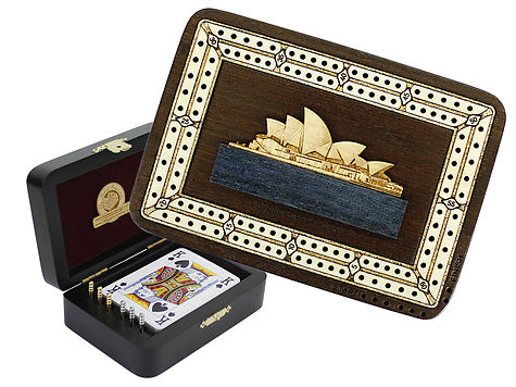 Sydney Opera House Wood Carved Inlaid Folding Cribbage Board / Box Wenge Wood / Maple - 2 Tracks